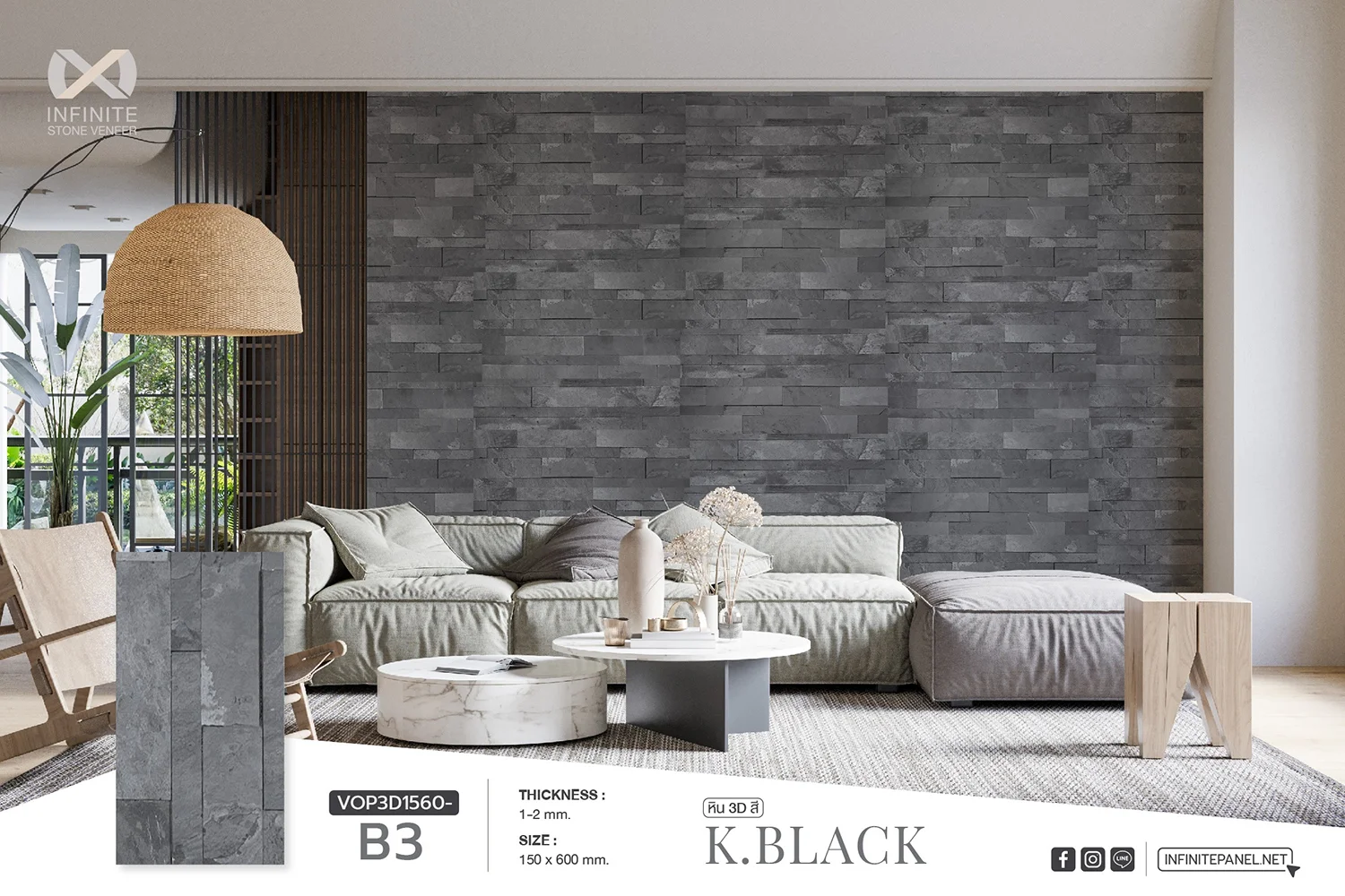 แผ่นหินวีเนียร์ K.Black แผ่นหินแท้ธรรมชาติวีเนียร์ (Stone Veneer) ชนิด 3D