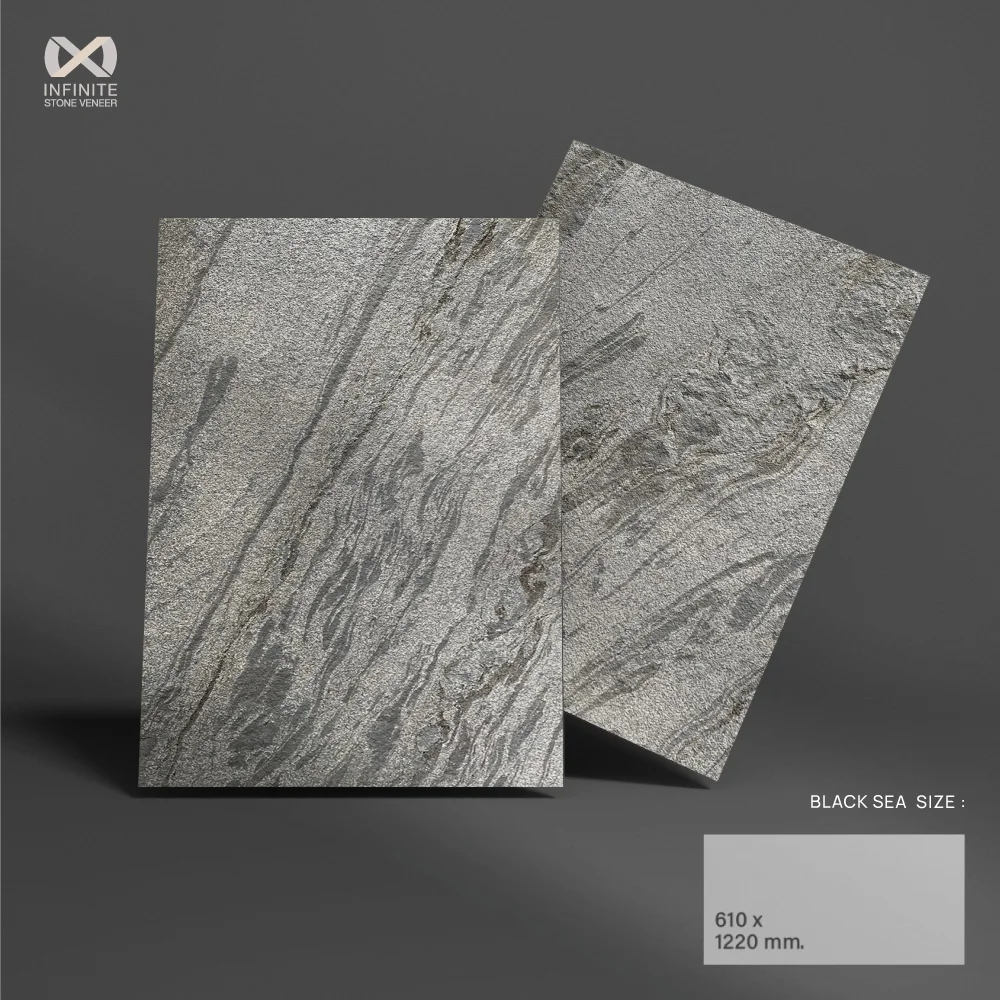 แผ่นหินวีเนียร์ Black Sea แผ่นหินแท้ธรรมชาติวีเนียร์ (Stone Veneer) ชนิดหินอ่อนทึบแสง