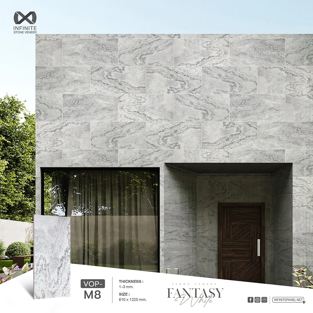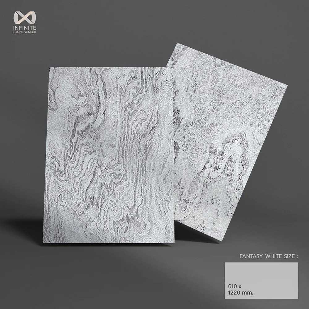 แผ่นหินวีเนียร์ Fantasy White แผ่นหินแท้ธรรมชาติวีเนียร์ (Stone Veneer) ชนิดหินอ่อนทึบแสง
