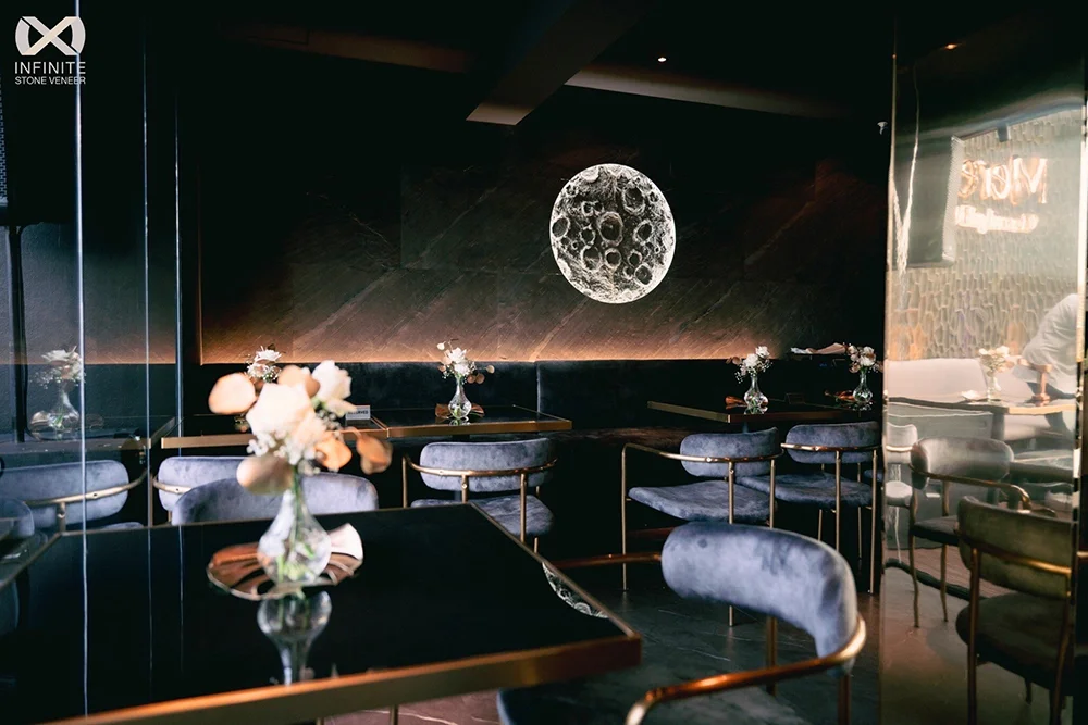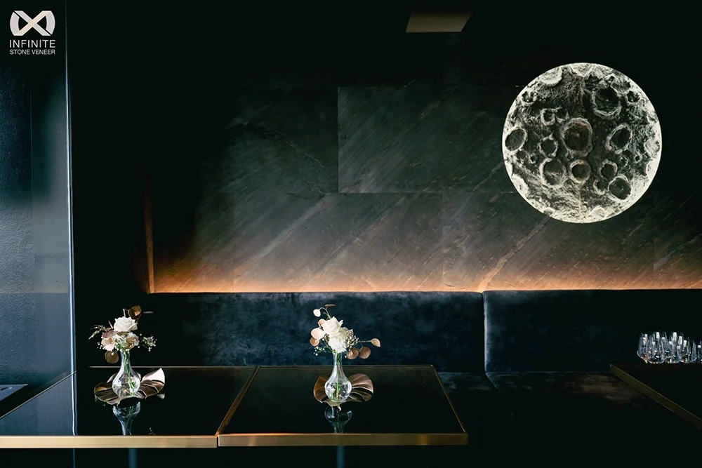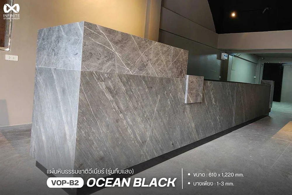 แผ่นหินวีเนียร์ Ocean Black แผ่นหินแท้ธรรมชาติวีเนียร์ (Stone Veneer) ชนิดทึบแสง