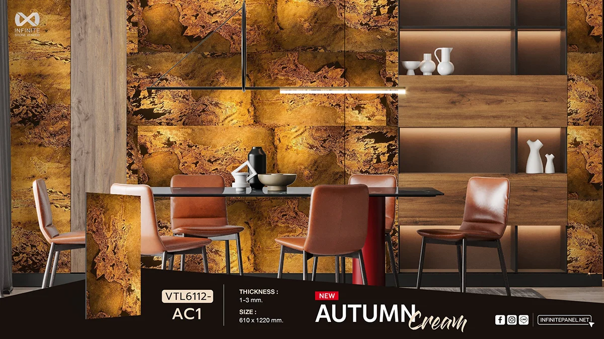 แผ่นหินวีเนียร์ Autumn Cream แผ่นหินแท้ธรรมชาติวีเนียร์ (Stone Veneer) ชนิดโปร่งแสง